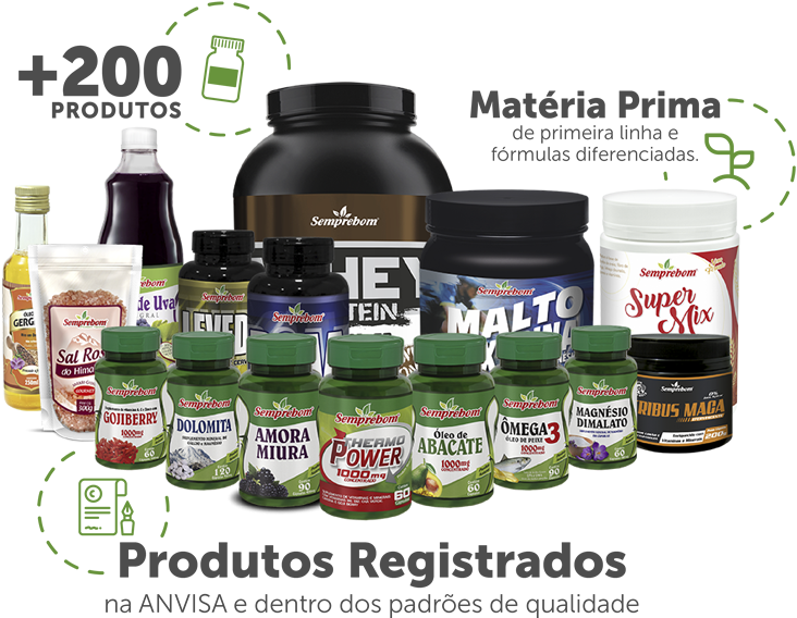 A Semprebom Indústria de Produtos Naturais e Nutracêuticos Ltda, foi constituída em 1996. Nosso objetivo é atender as necessidades de saúde e bem estar dos clientes, através de produtos nutracêuticos, suplementos vitamínicos, minerais, energéticos, fibras in natura e nutrição esportiva. Procuramos manter nossos produtos com o mais alto padrão de qualidade e rígidos procedimentos de manipulação, fiscalizando de perto o processo de produção, oferecendo segurança de nossos clientes. E para conquistarmos esta performance, a Semprebom mantém todas as exigências de normas legais da ANVISA (Agência Nacional de Vigilância de Saúde). Produzimos uma linha de produtos que proporciona mais saúde e bem estar. Pois sabemos que o cuidado com à alimentação é um dos grandes fatores responsáveis por melhorar o equilíbrio emocional, físico e espiritual, harmonizando o funcionamento de todo o corpo. Buscamos através de nossos produtos, uma alternativa confiável para todos que se preocupam com a saúde. Porque Semprebom é viver com saúde! Marcelo Neves / Diretor Executivo